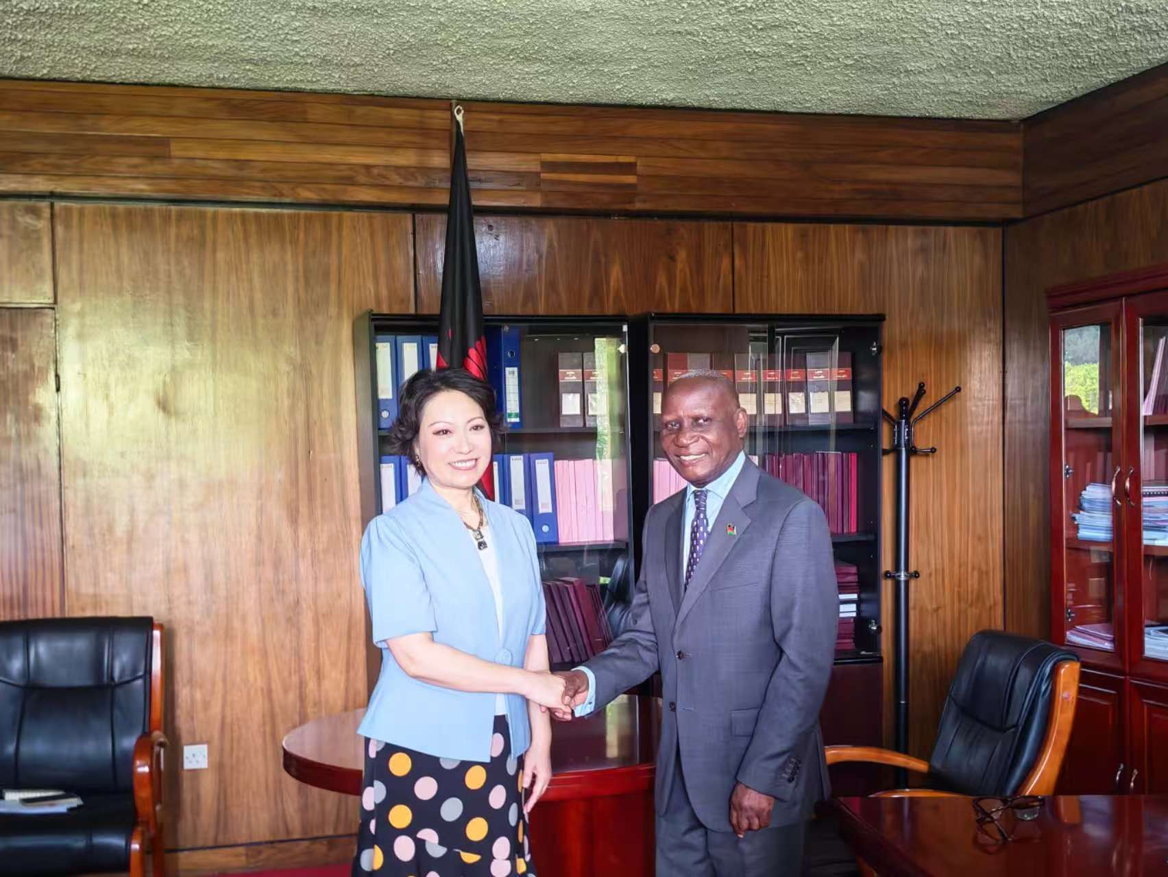 3月5日,陆旭大使拜会马新任工业化、商贸和旅游部长伊塔耶,双方就加强经贸合作交换意见。张春法参赞陪同会见。