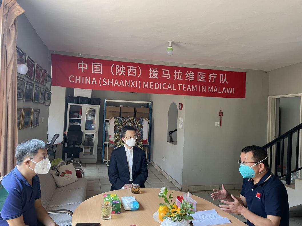 12月2日,驻马拉维大使龙舟前往医疗队利隆圭驻地,慰问即将归国的第九批援马医疗队。经商参赞张春法陪同。